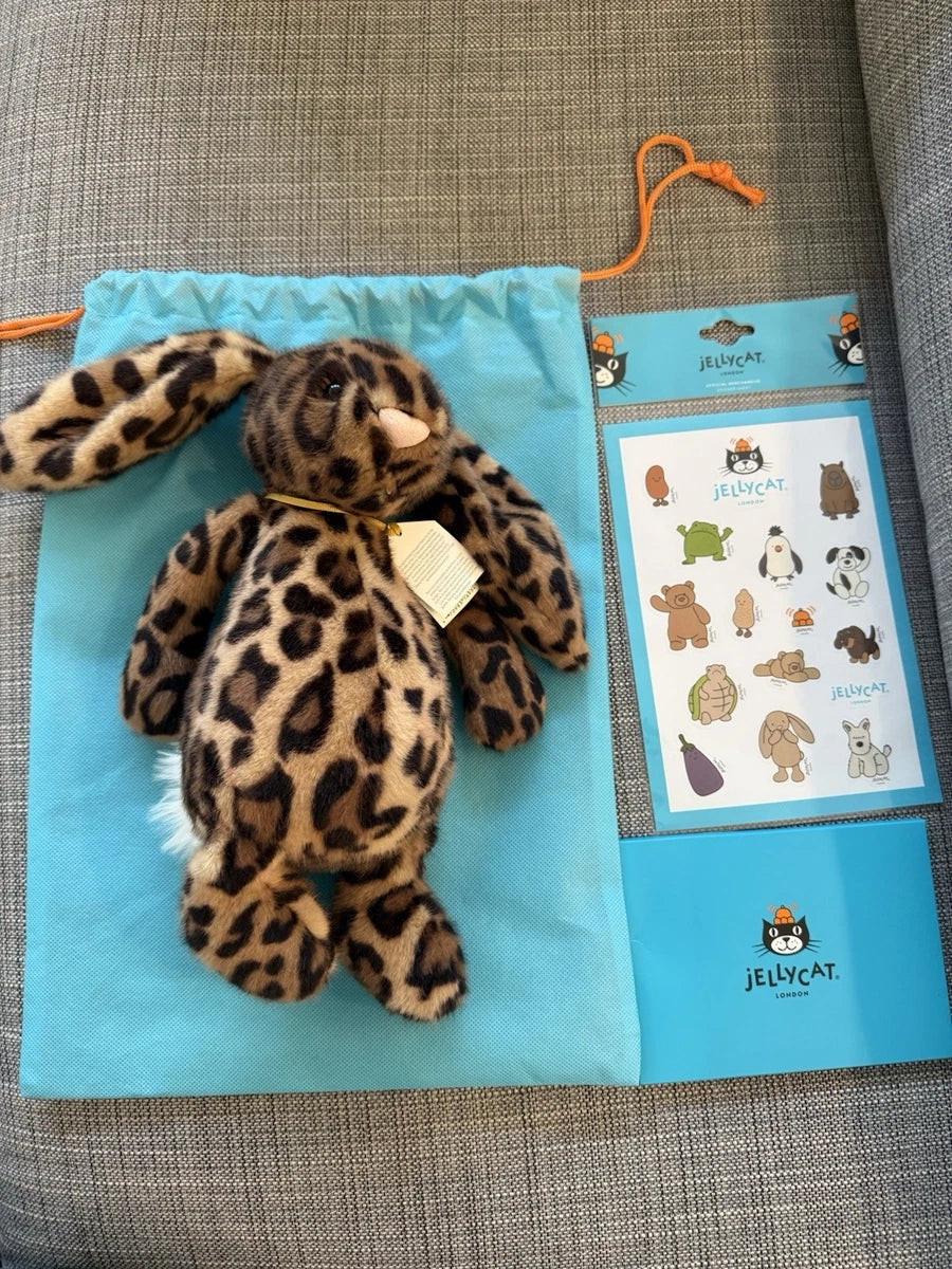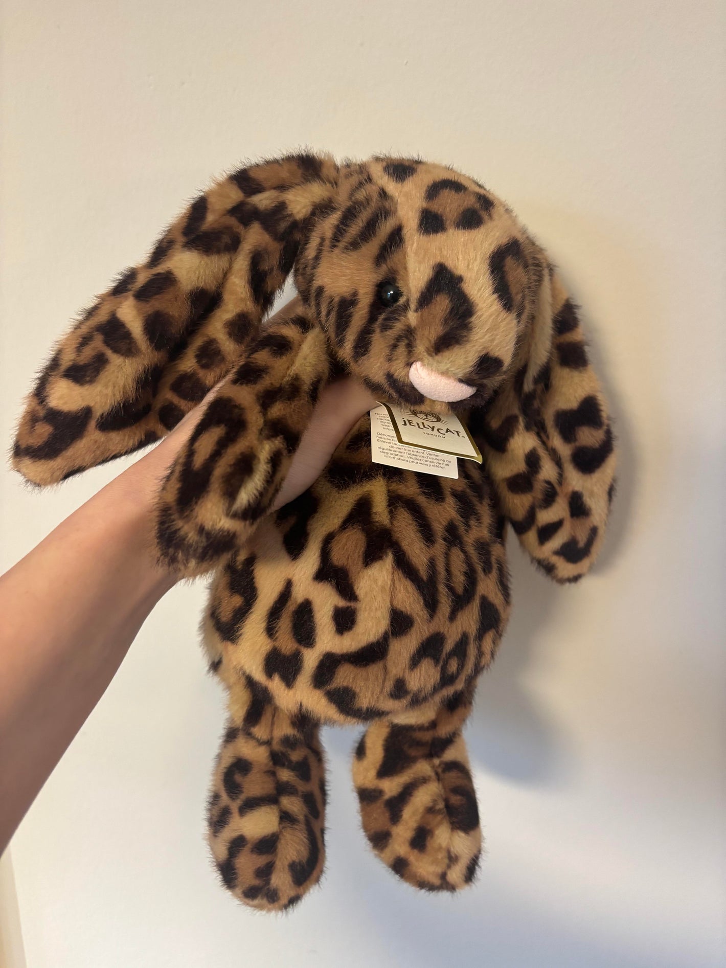 A truly special collector’s piece. This super rare Jellycat exclusive features the wild leopard-print Bashful with ultra-soft fur, pink nose, and pom-pom tail. Brand new with tags and dustbag included.Perfect for gifting and extremely limited, once it’s gone, it’s gone.